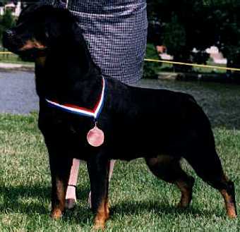 Select 1 CH. Gamegards PDQ von Ferro AKC# WP603076/05 | CKC # 1067230 | Whelped: 01/04/95 | OFA# RO-53282G25F 'Good' | OFA Heart Certified | Black & Rust # 1 Rottweiler Bitch in Canada (June '99) ALl Breed RCC System