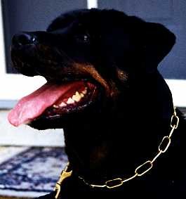 We have since found Miss Ruby a new home...with a male Rottweiler, Roscoe and new human parents, Val & Nigel. Ruby has decided that keeping Roscoe in line is lots of fun. |